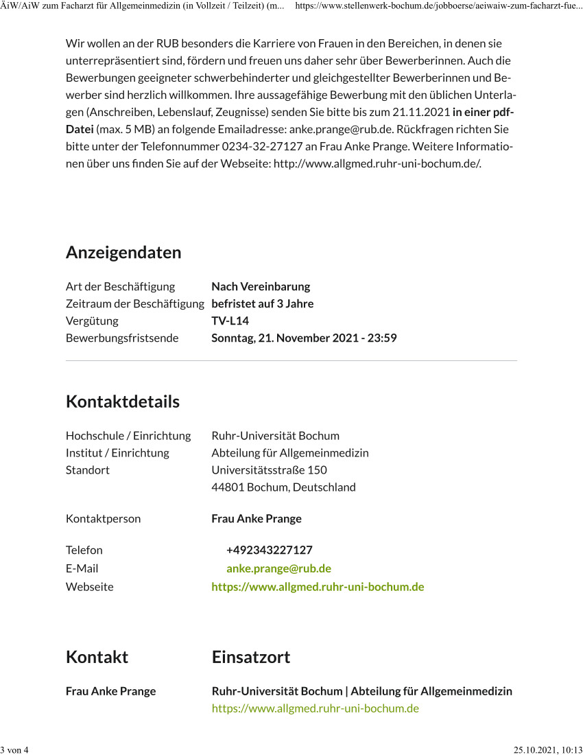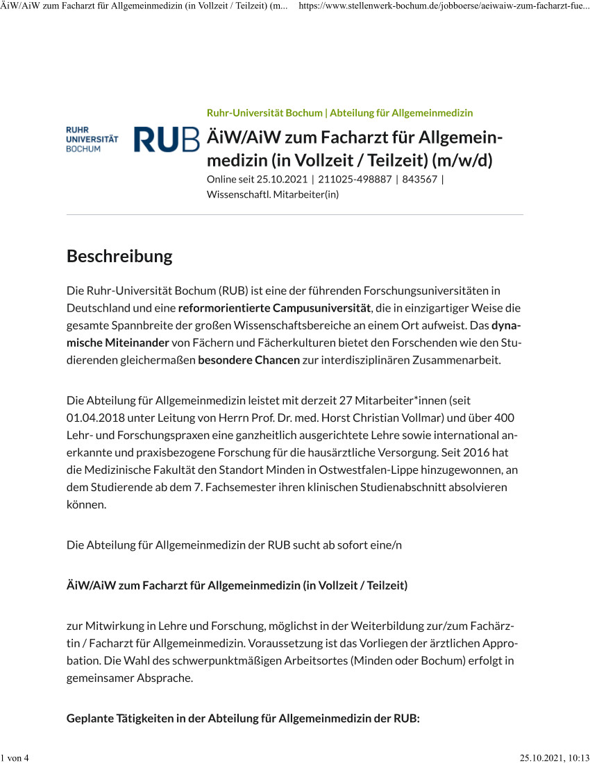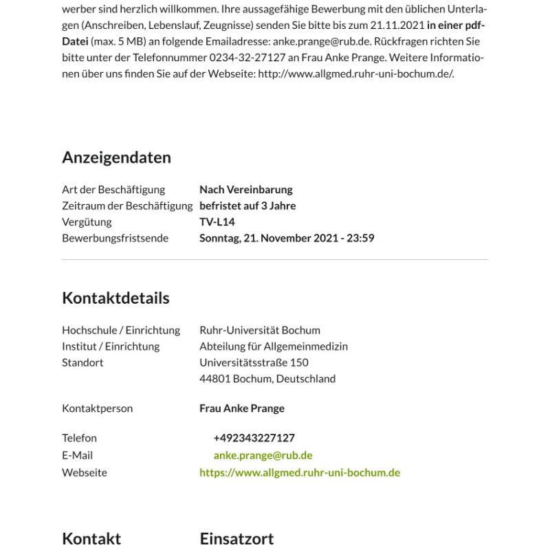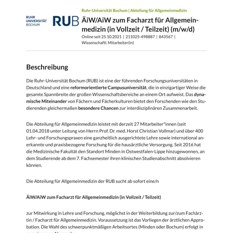 Die Abteilung für Allgemeinmedizin der Ruhruni Bochum sucht ab sofort