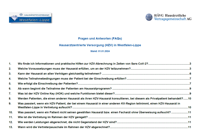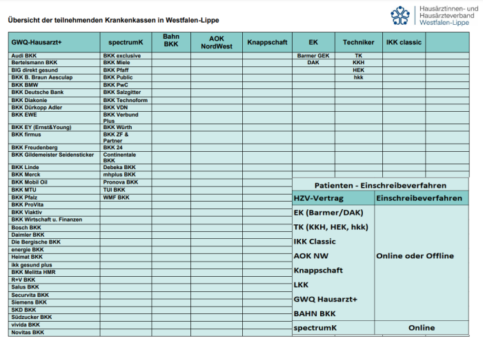 Hier bieten wir Ihnen Abrechnungshilfen für die HZV-Verträge in Westfalen-Lippe an: