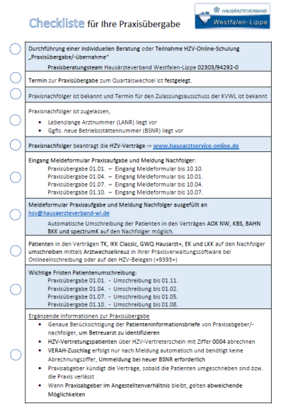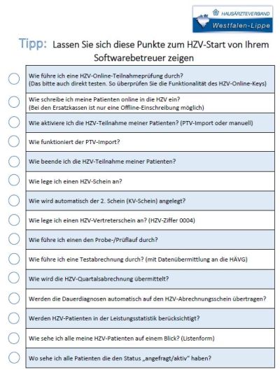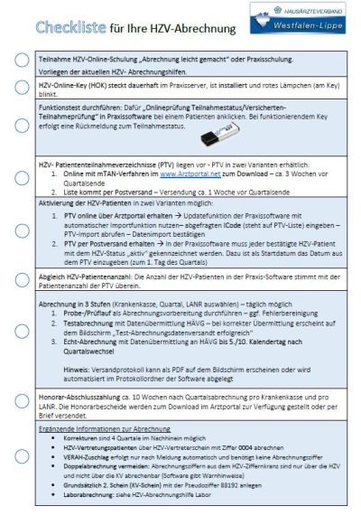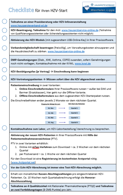 Um einige offene Fragestellungen zu klären, geben wir Ihnen gern Checklisten zum Start, zur Abrechnung und ausgewählte Fragen an den Softwareanbieter mit an die Hand, um in die HZV zu starten.