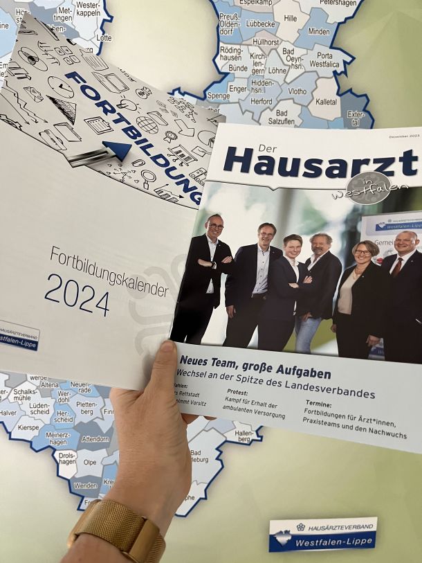 Der neue "Hausarzt in Westfalen" ist da: In diesen Tagen wird er an die Praxen in Westfalen-Lippe geliefert und ist ab sofort auch als E-Paper in der Mediathek auf der Website des Hausärzteverbandes Westfalen-Lippe abrufbar. Und auch der Fortbildungskalender 2024 ist frisch veröffentlicht.