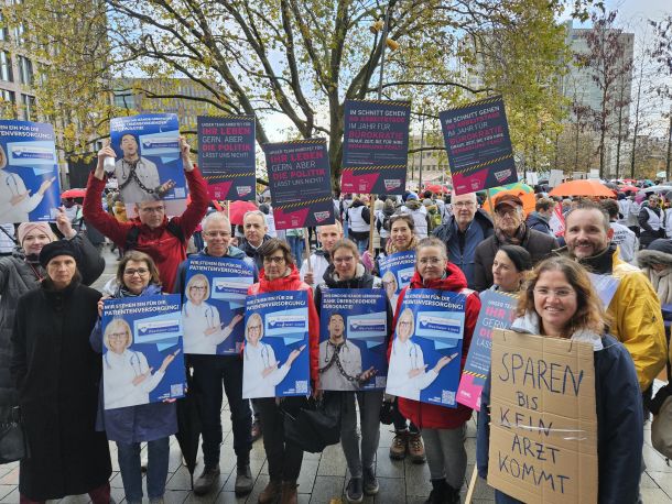 Bei einer Kundgebung in Dortmund haben am 15. November beide Berufsgruppen gegen die Gesundheitspolitik der Bundesregierung und für den Erhalt der wohnortnahen Versorgung der Bürger demonstriert.
